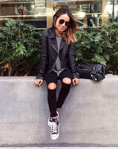 Camiseta com calça skinny: Por serem mais justas, o interessante aqui é optar por camisetas mais largas e compridas, criando assim um visual bem despojado. Para dar uma acinturada, um blazer ou colete são ideais.