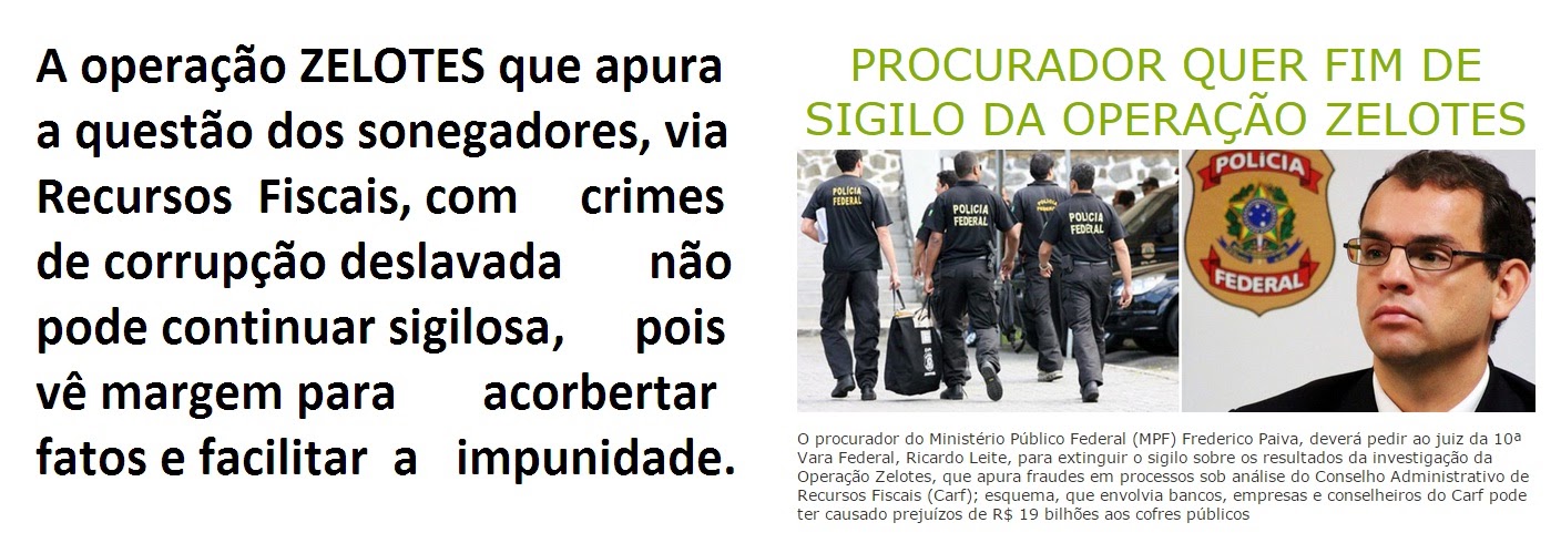 Quanto aos outros dois processos e procedimentos de apuração contas secretas do HSBC e Operação Zelote, de iniciativa do Governo Federal, do Ministério da Justiça e da Fazenda, envolvem essencialmente, grandes empresas e empresários com crimes fiscais vultuosos entre outros ilícitos.